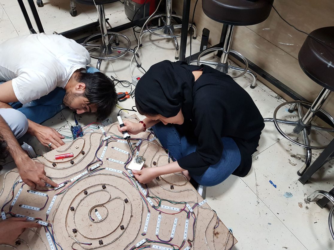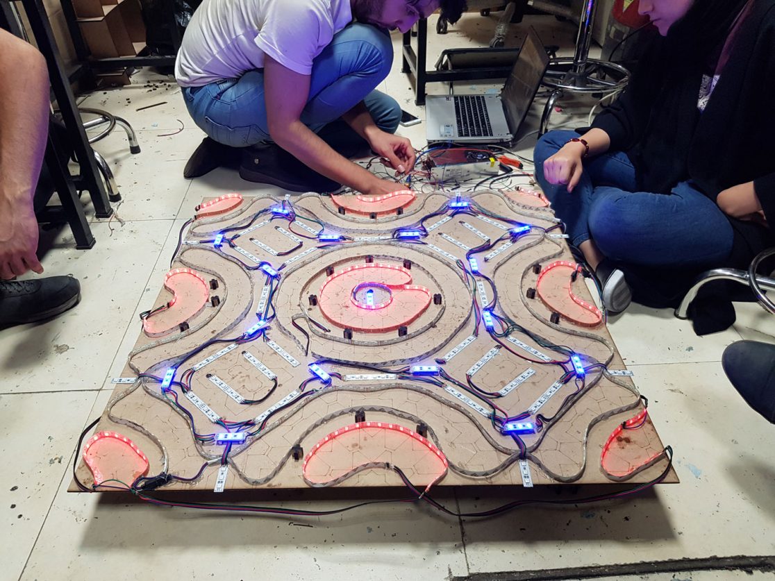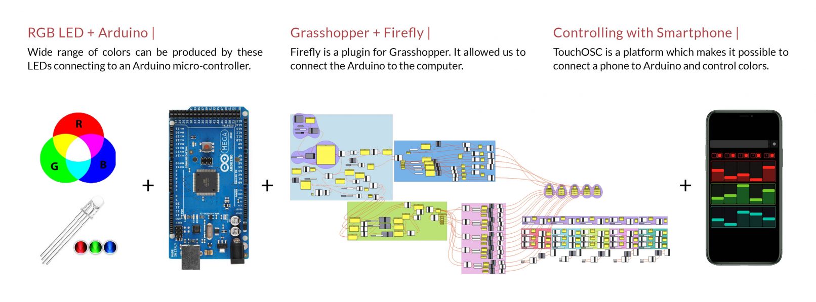 The goal of this project was to build some panel boxes to be used for covering a facade. However, it is suitable for other purposes like ceiling lighting and ornamental wall lighting. This prototype, which has been built with wood and plexiglass in combination with RGB LEDs and a micro-controller, was the first attempt in this regard. We were able to control the colors by a mobile phone wirelessly.