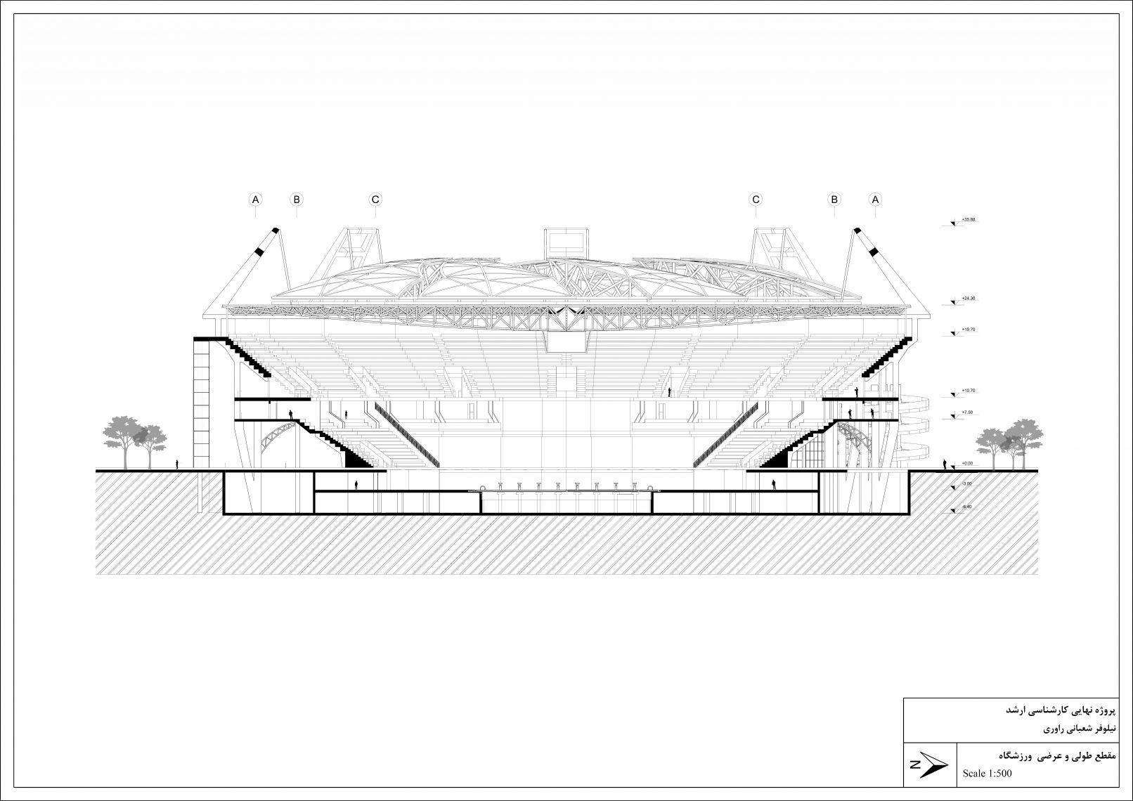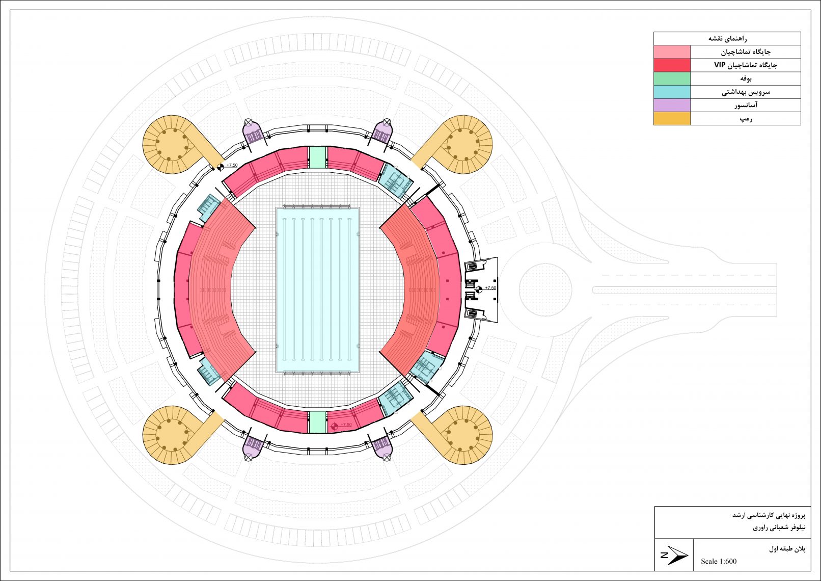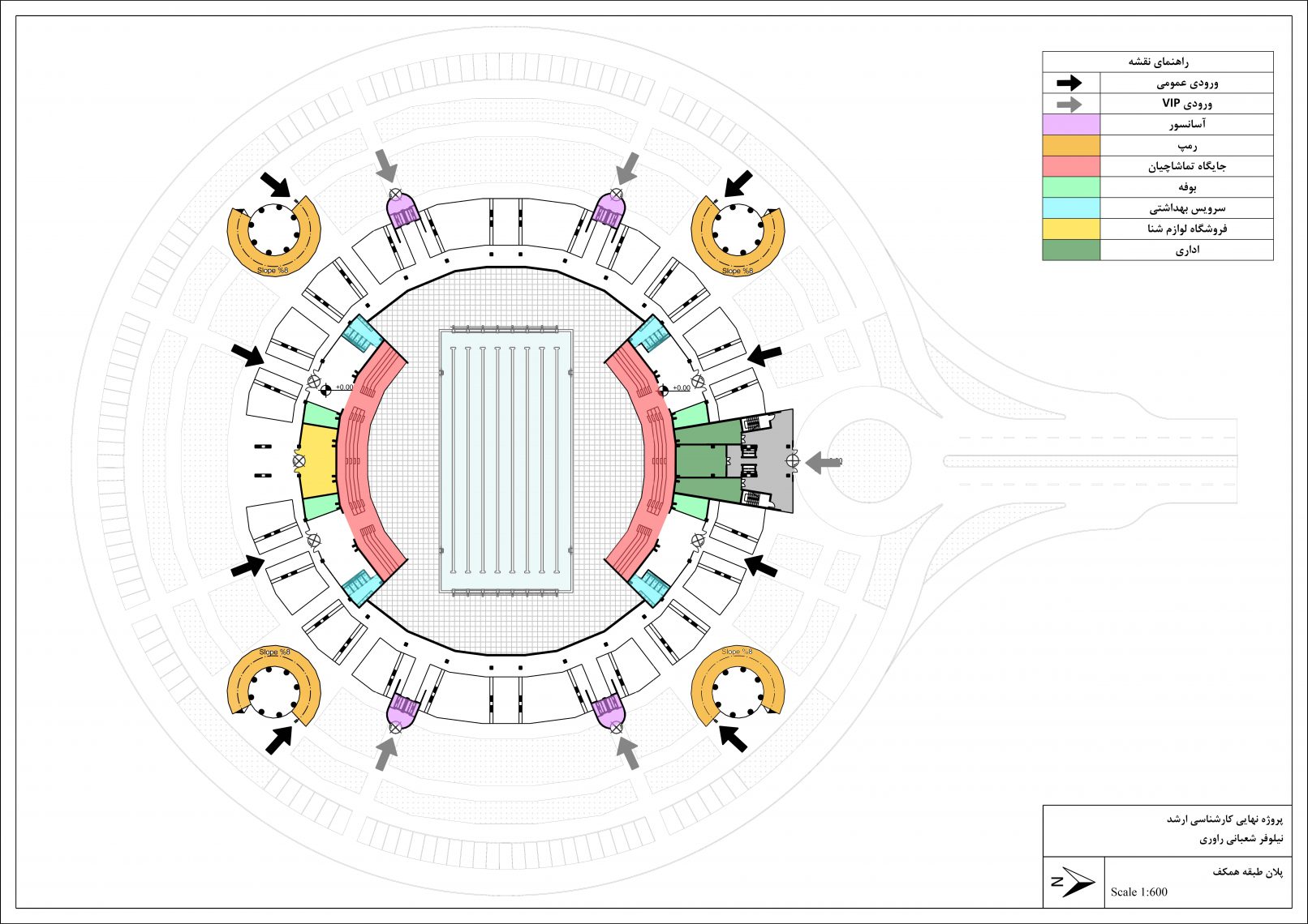 This project, which is the master thesis of Niloofar Shabani, is a swimming pool stadium with a retractable roof. The site of the project is in Tehran province, Safadasht city. Designing the roof was a major aspect of this project. After being familiar with other types of retractable roof FBS and then RRPS was chosen to be a structure for the retractable roof of the stadium.