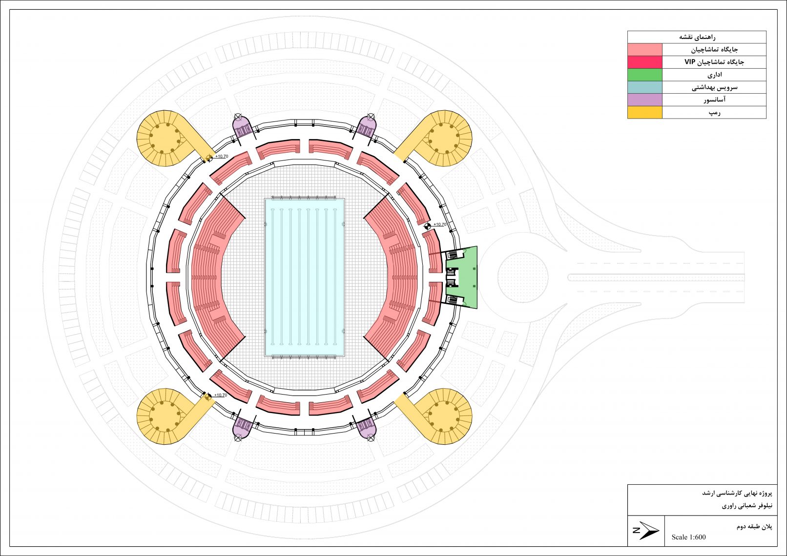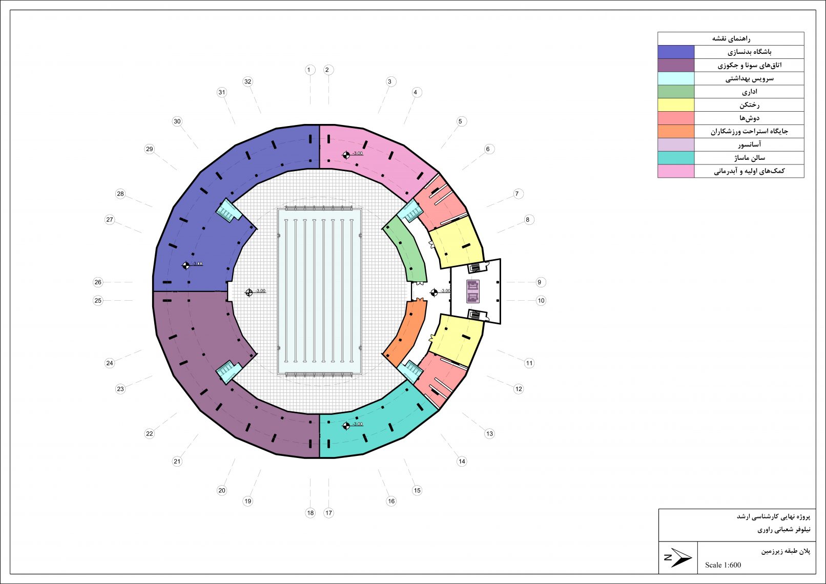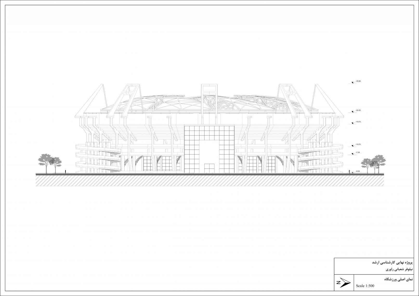 This project, which is the master thesis of Niloofar Shabani, is a swimming pool stadium with a retractable roof. The site of the project is in Tehran province, Safadasht city. Designing the roof was a major aspect of this project. After being familiar with other types of retractable roof FBS and then RRPS was chosen to be a structure for the retractable roof of the stadium.